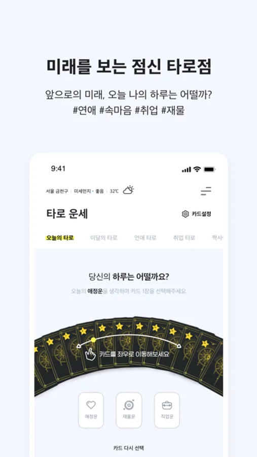 -신묘한 타로풀이! 메뉴를 열자마자 빠르고 간편하게 타로 풀이를 할 수 있어요.