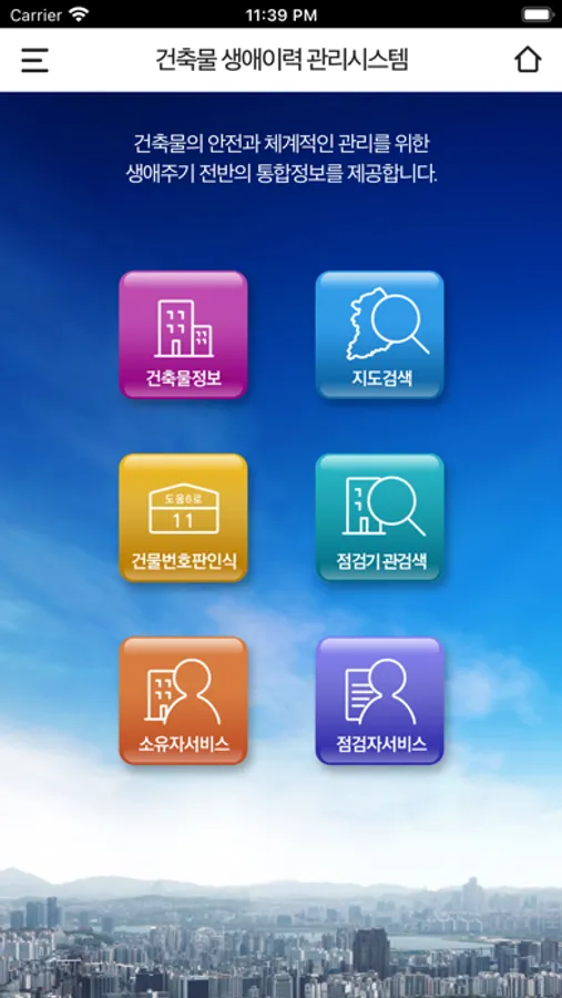 국민들이 쉽고 편리하게 건축물 정보를 확인할 수 있는 건축물생애이력관리시스템(https://blcm.go.kr)의 모바일 버전입니다.