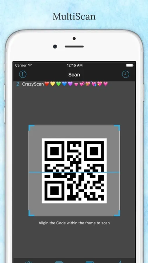 - Multiscan allows you to scan a number of QR codes continuously and shows the results swiftly.