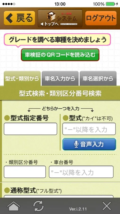 ・型式、通称型式(フル型式)は声で直接入力もできます