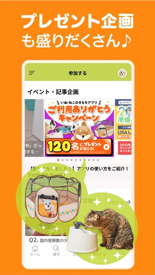・ペット登録すると、季節や年齢にピッタリなアドバイスが毎日届く