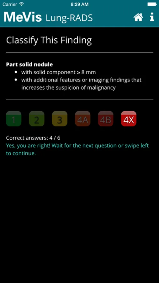 √ Quiz Mode: Can you assign the correct Lung-RADS category to randomly generated nodule findings? Challenge yourself and compare your choice to ACR Lung-RADS™ category.