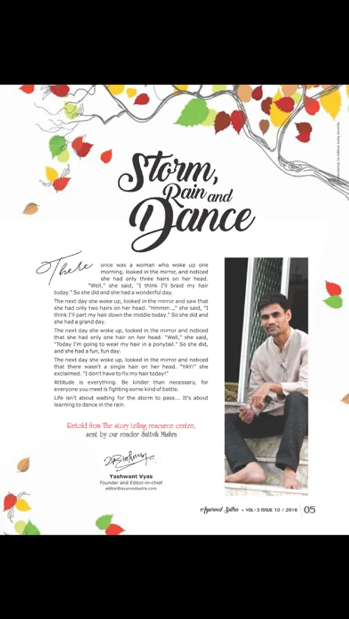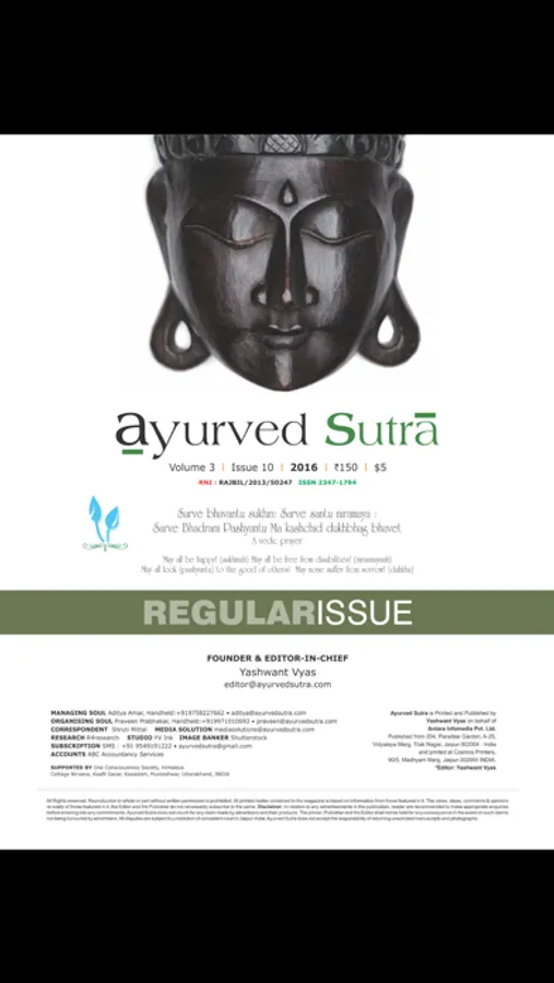 The idea of Ayurved Sutra is to compliment Ayurveda with novel world view, latest clinical research, events, activities and interactions and it is rather a Handbook of holistic life with a 360 degree review mechanism. It integrally gels the elements of a mainstream magazine with an experiential research journal.