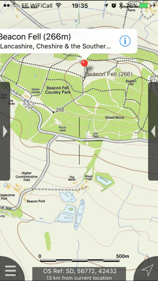7 different levels of offline 2014/5 Ordnance Survey map detail from national overview to street view within the region. (No data connection required)