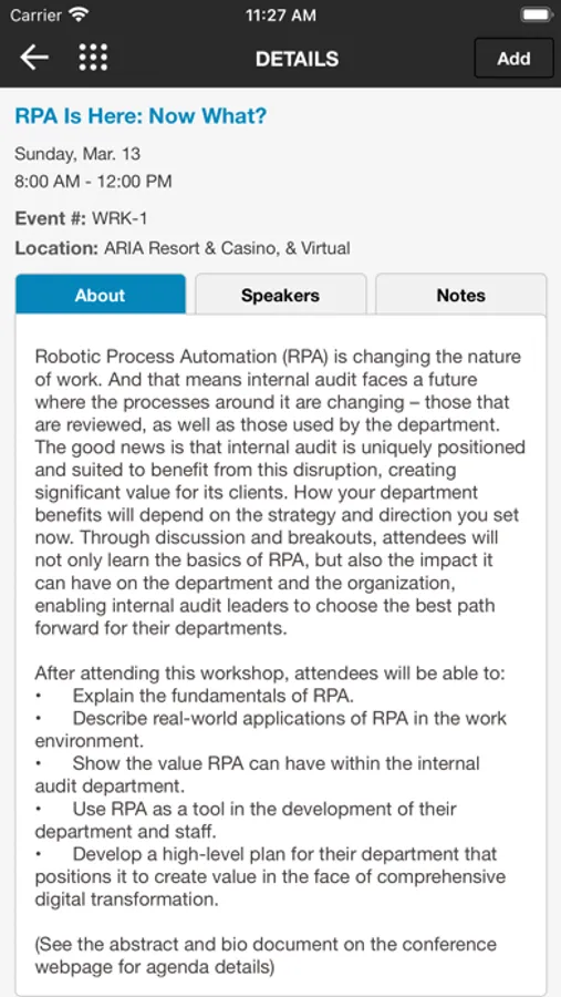 TripBuilder EventMobile™ is the official mobile application for The Institute of Internal Auditors Headquarter Conferences.