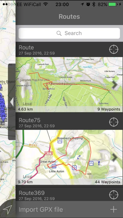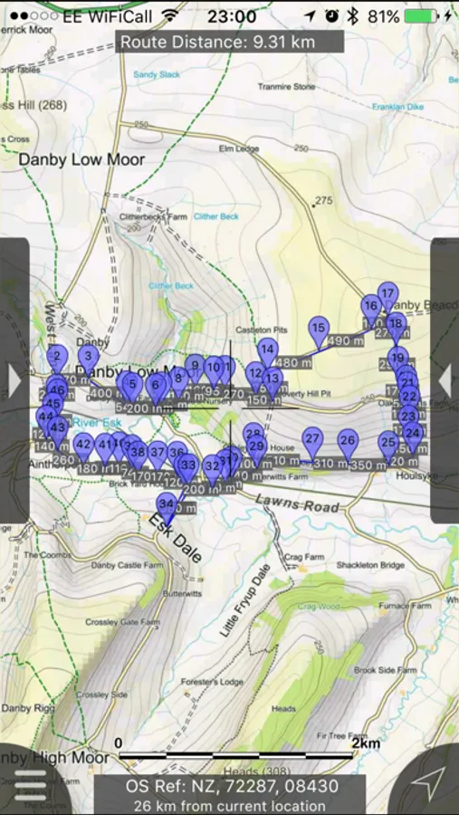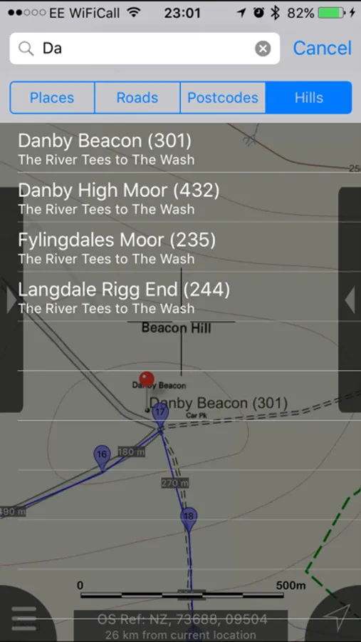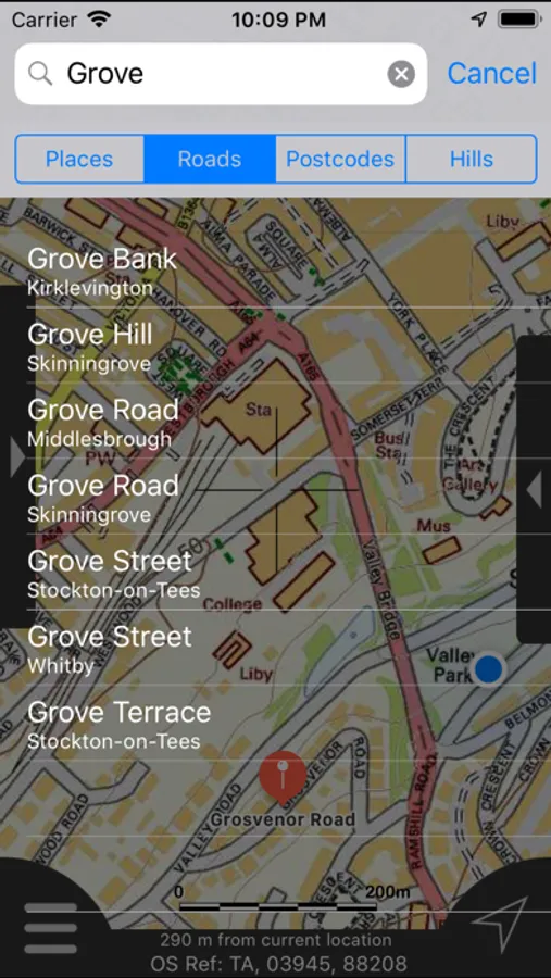 - Offline search functionality with searchable locations (places, roads, post codes and hills). (For the place search a location's latitude and longitude is accurate to 0.1 of a minute of the centre point of the 1x1 km National Grid square in which the name falls)