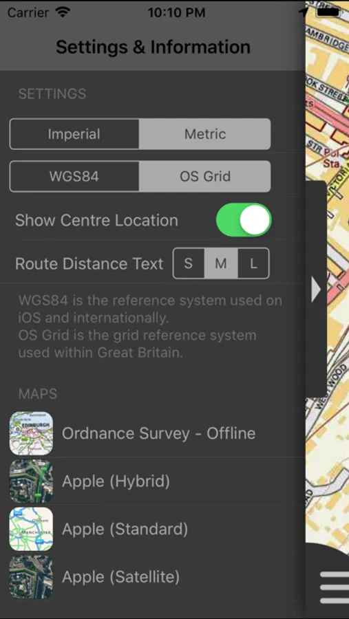 - Display of current GPS position as OS Grid Reference or WGS84 latitude and longitude