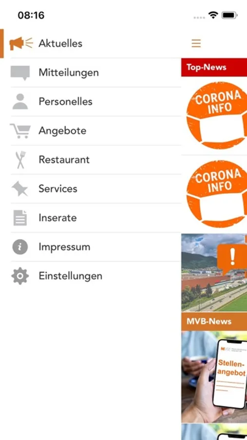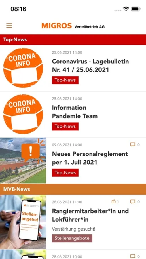 - Unternehmensspezifische News für Mitarbeitende der MVN AG via Login: Mit Farb-Label pro Kategorie ausgezeichnet für eine bessere und schnellere Übersicht.
