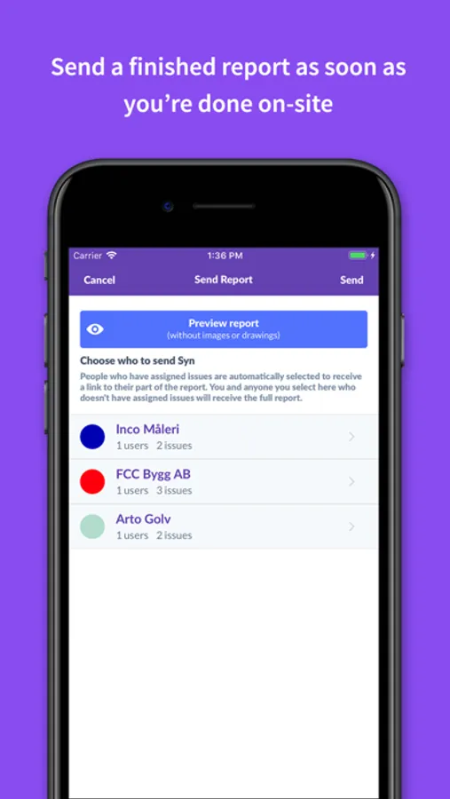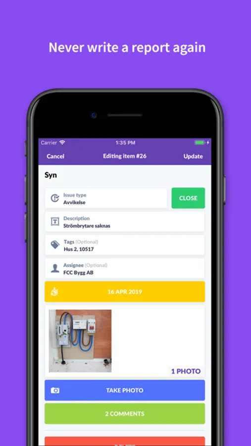 iControl isn't just a checklist app, it also comes with a fully fledged issue tracking system. As soon as you create an issue, that issue gets put into a report and sent to the responsible subcontractor.