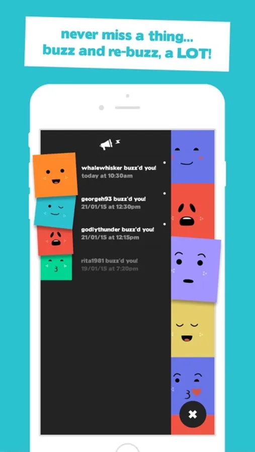 When simply sending a smiley face, a wink, a kiss or any other emoji isn't enough, you need to Buzz someone instead. It sends the updated and hilarious new faces as a message, and a cute little noise, which is received and played out as soon as it's received, no matter if you're using your phone or not!