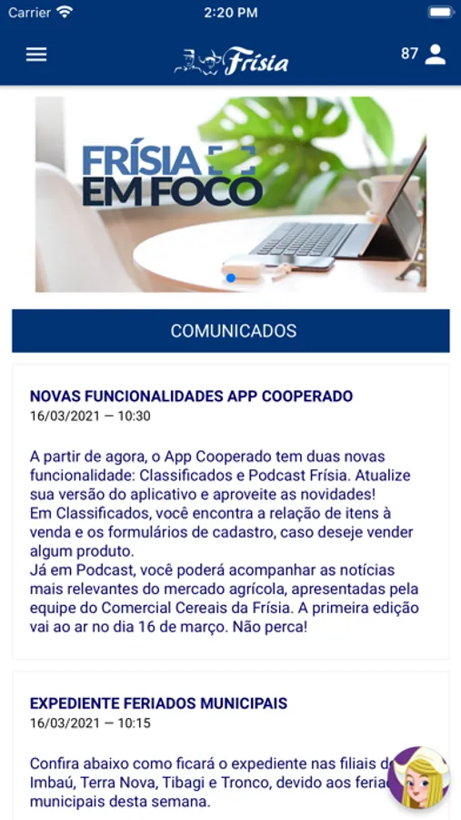 Aplicativo exclusivo para cooperados da Frísia Cooperativa Agroindustrial.