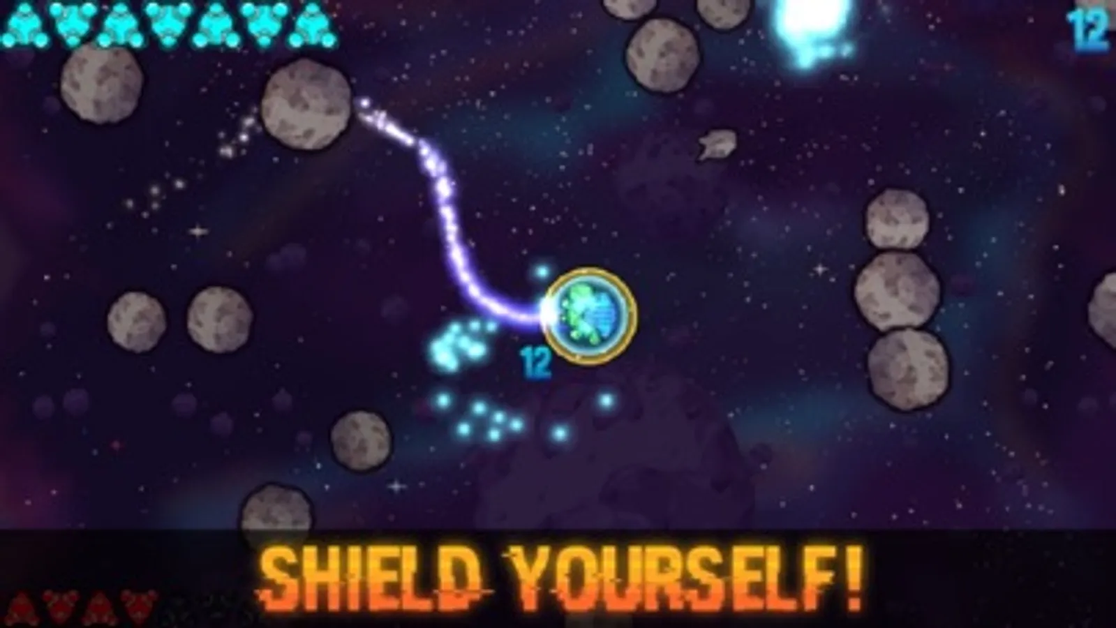 - A super-fragile starter ship with no powerup, but a tight turning radius… pretty good upsell, eh?