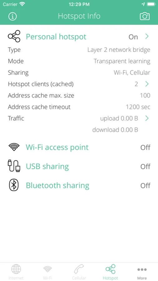 PERSONAL HOTSPOT INFO