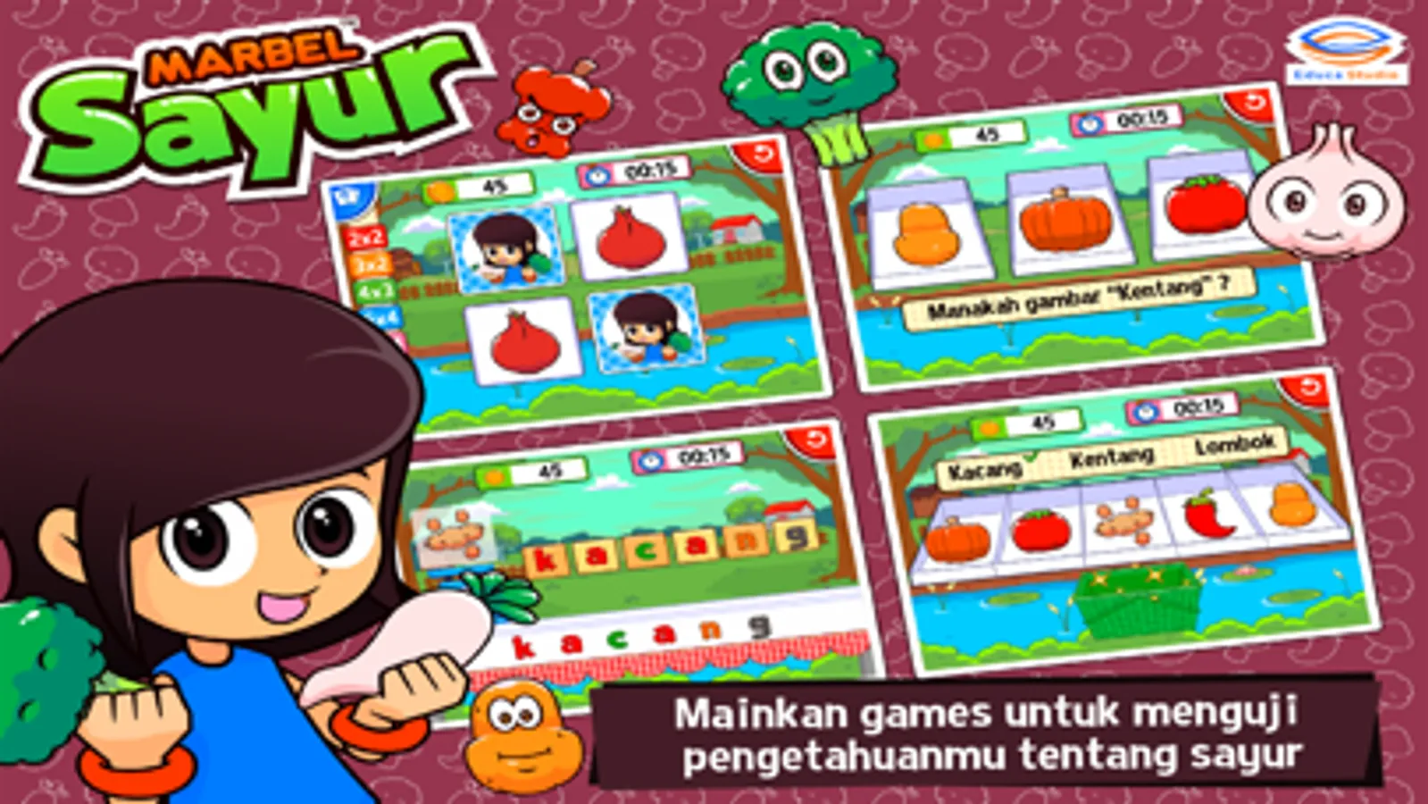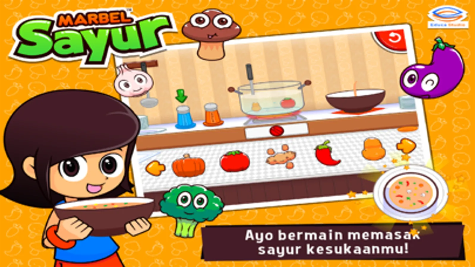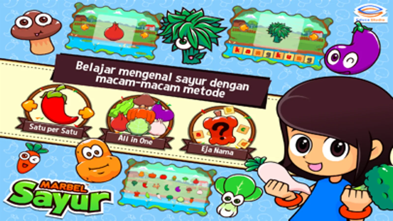 Marbel Belajar Sayur - Aplikasi pendidikan yang membantu anak-anak dalam belajar mengenal berbagai macam sayur mayur yang ada disekitar kita. Seperti bayam, sawi, tomat, wortel, dan masih banyak lainnya. Ayo bunda, kita ajak anak-anak untuk belajar mengenal berbagai macam nama sayur sejak dini. Bersama Marbel Belajar Sayur, anak-anak akan dikenalkan pada dunia belajar yang lebih menyenangkan. Selesai belajar, mereka bisa memainkan beberapa permainan edukasi yang menarik untuk menguji kemampuan mereka. Sejauh apakah kemampuan si buah hati..?? Ayoo kita uji mereka lewat Marbel Belajar Sayur.