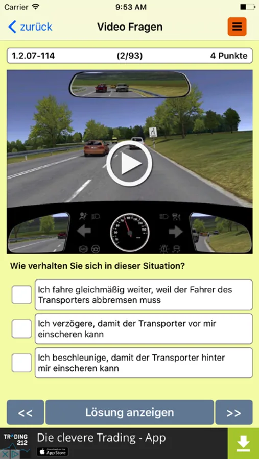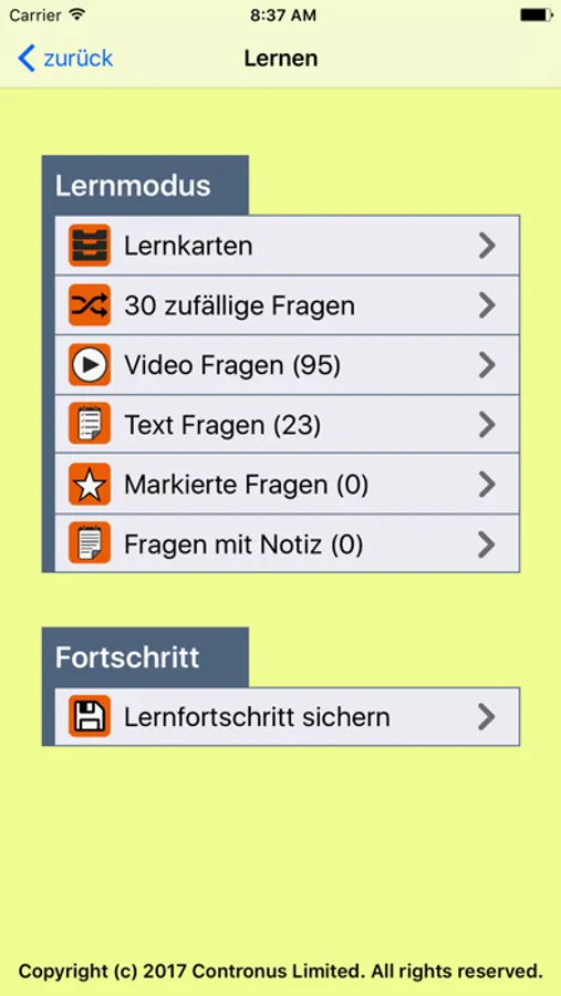 Erarbeite den offiziellen Katalog durch verschiedene Lern Modi: Lerne Fragen entweder nach Themengebiet sortiert, nach dem Leitner Lernkarten-Prinzip, nach Zufallsprinzip oder unter den realen Bedingungen einer Prüfung.