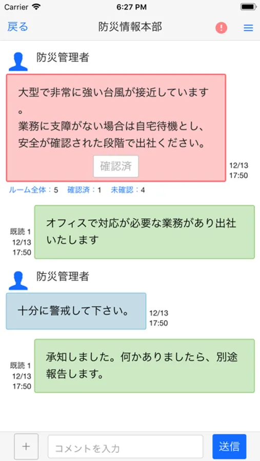 災害時は交通の混雑具合や周辺の被害状況などのリアルタイム情報を特定メンバーで情報交換できます。