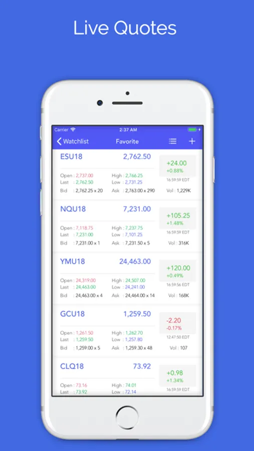 The ultimate solution to live quotes, comprehensive charts with strategic indicators/signals, powerful money flow alerts, charts, & analysis, the most advanced trading alerts of commodities, currency and stock futures. Check in-depth quotes like bid, ask, bid size, ask size, open, high, low, last, and volume in a glance. Study high-resolution charts with multiple Technical Indicators and adjustable parameters, automatic Fibonacci Retratement Lines, Moving Averages, Price Band, Overlays, Chart Periods, Types, and Date Ranges. Set and receive various personalized alerts, Price alert, TA Indicator Cross Up alert, Oversold / Overbought Signal alert, Bullish / Bearish Trend alert, Trailing alert, and many more. Plus, manage multiple watch-lists to track and research on your picks; also enjoy CLOUD-SYNC watch-list on multiple devices and Passcode / Touch ID Protected app access ensures your sensitive financial information are just to yourself! -- All at your fingertips. Quick, fast, with rich content. A Must-Have for futures players!