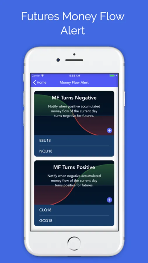 Getting alerted is vital and this app provides the MOST Advanced Futures Trading Alerts on the App Store! You can easily set powerful futures money flow alert. You will receive alert notifications when positive accumulated money flow of the current day or of the last 30 minutes turns negative for futures; you will also receive alerts when negative accumulated money flow of the current day or of the last 30 minutes turns positive for a futures contract. Futures price alerts are available as well.