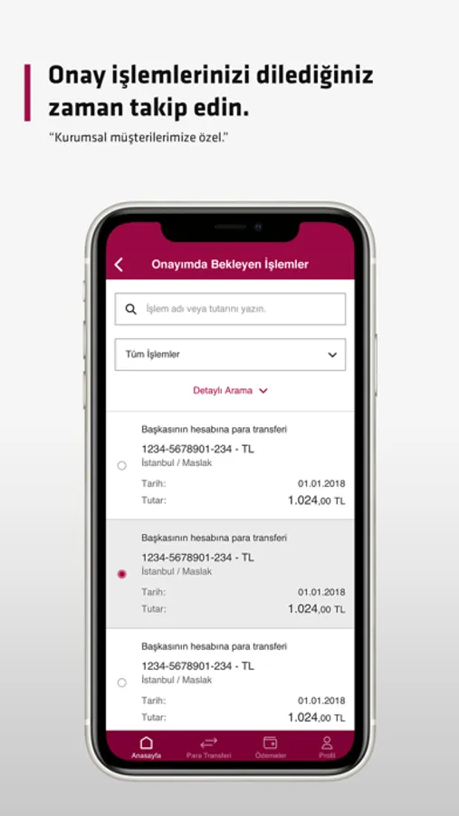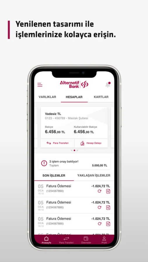 With Alternatif Bank Mobile, you can easily approve your company transactions pending approval, from anywhere you like!