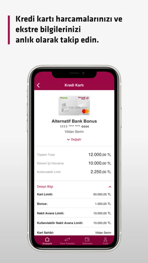 With Alternatif Bank Mobile, you can transfer money, perform credit card transactions, make payments, perform investment transactions, open a time/demand deposit account, etc., without going to the branch, and monitor your accounts 24/7.