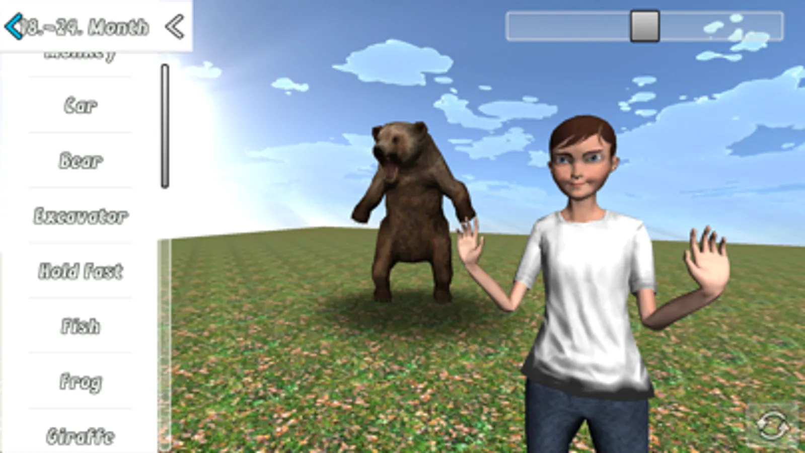 There are 100 Signs to learn and they are beautifully illustrated by our 3D Character which can be turned to see exactly how the sign should be performed. Occasionally the sign is supported with a matching 3D model to make it even more easier and fun for the babies to learn.
