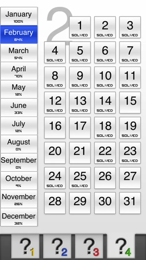 This game has one riddle for each day of the year - and two more! All of them are accessible right away, for you to play at your own rhythm.
