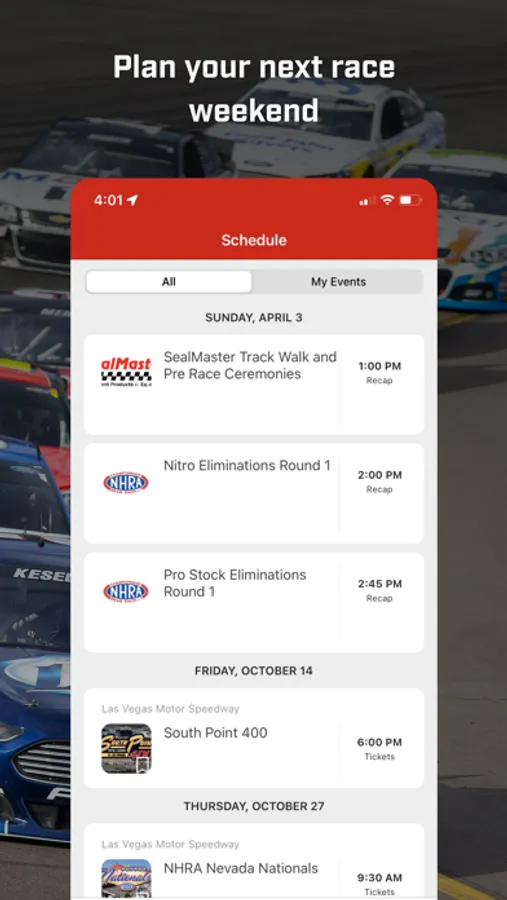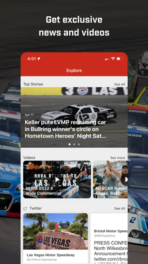 Welcome to the official app of the Las Vegas Motor Speedway, bringing fans closer to the action and enriching the event experience. Get all the info you need for race day and beyond, plus exclusive content, and personalized offers and experiences. This is a mobile experience to help you find what you love whether it’s event schedules, driver/celebrity appearances, or an offer for your favorite concession item. Powered by Uphoria.