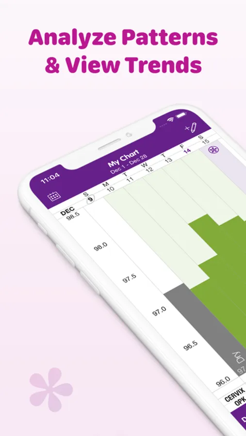 • Track key fertility indicators, including Cervical Fluid, Basal Body Temperature (BBT) and Cervical Position