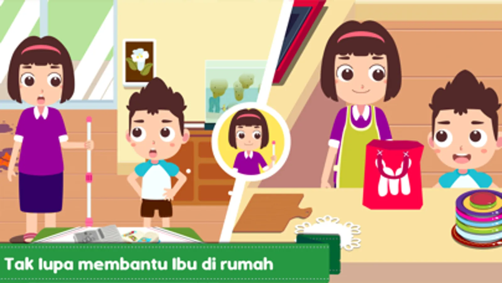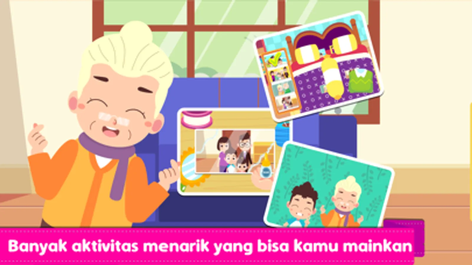 - Enam cerita keluarga: Ayah dan Bunda, Kakek dan Nenek, adik perempuan, serta binatang piaraan!