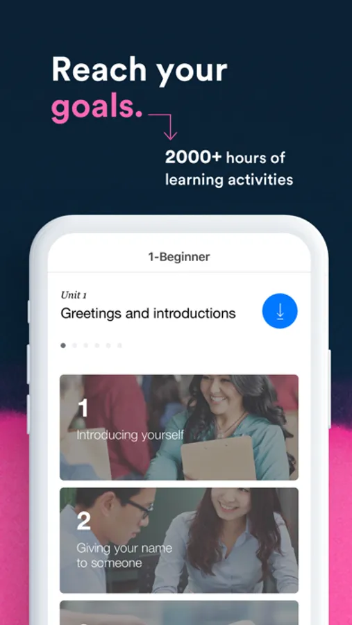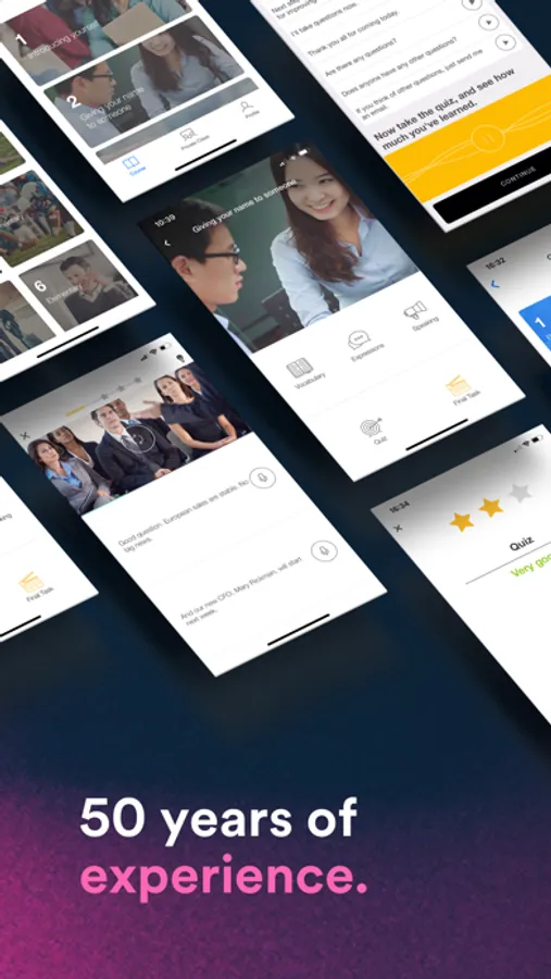 But our app offers more than just conversation classes. It’s a comprehensive and interactive course that leads you step by step through the the everyday English skills you need for work, travel and more. You'll find 16-levels of multimedia lessons, pronunciation practice and 100s of hours of vocabulary and grammar exercises.