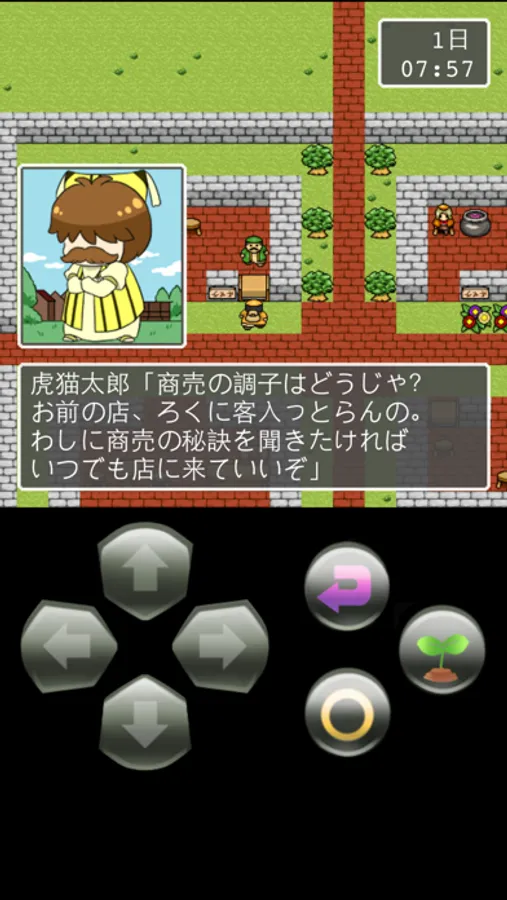 (序盤は店にずっといて客に応対していれば、色々と教えてくれる人が次々と来ます。用心棒もやってきて雇えます。その他分からないことはデベロッパのWebサイトにある「よくある質問」で分かります)
