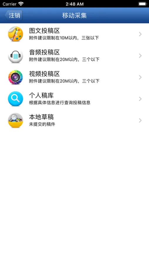 为记者和用户提供了一个基于智能移动终端,可实现文字、图片、音频、视频等多媒体新闻稿件的采集、传送等功能的应用系统,实现了即时发稿功能、前方记者与后方编辑部的互动等功能。