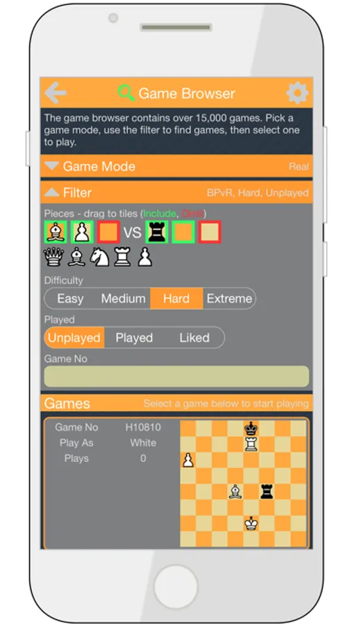 If you’re a regular chess player you should still get a kick out of solving the conundrums in the Checkmate Challenge section, so make sure to check it out. However, if you’re looking to really improve your endgame head over to the Game Browser. Here you’ll find all the tools you’ll need to tailor the app to meet your needs. Select the piece setup you want using the filter, or leave it empty to get a variety of different games. Set the difficulty to your level, or challenge yourself by going higher.