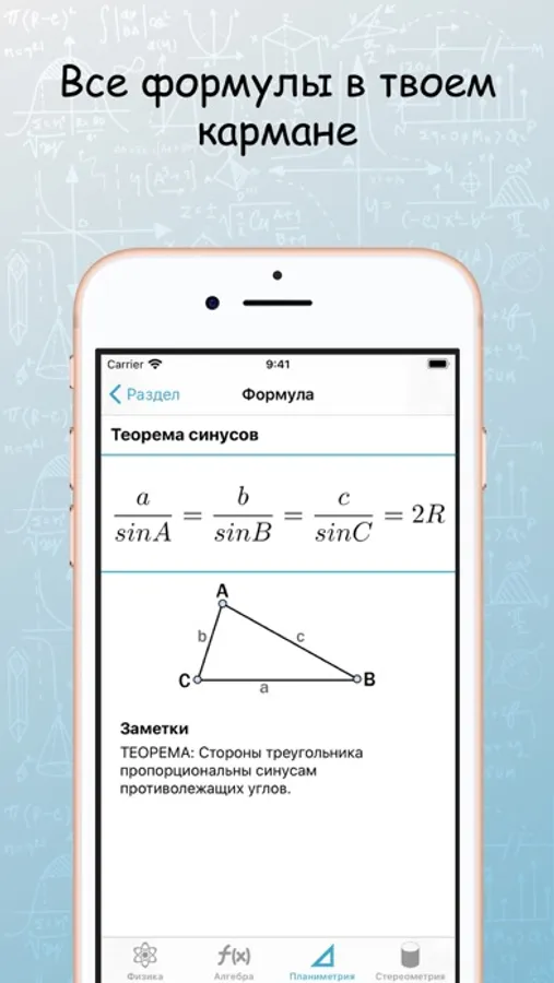 Приложение для тех, кому надоело часами просматривать тетради и учебники в поисках нужной формулы.