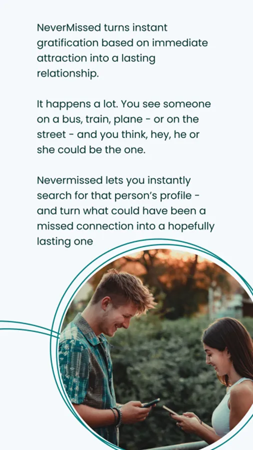NeverMissed turns instant gratification based on immediate attraction into a lasting relationship.