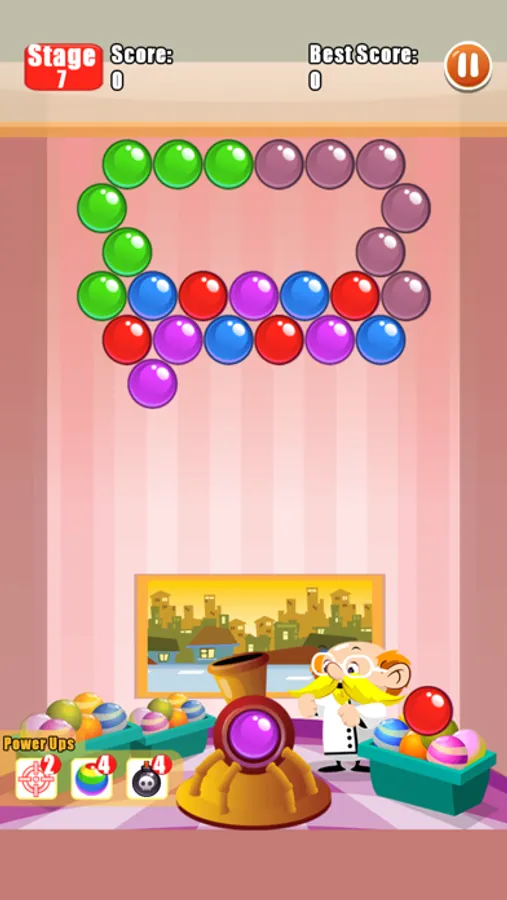 Professor Bubble needs your help! In his excitement over his new bubble machine, he has flooded his own laboratory with bubbles. You’ve been equipped with a bubble shooter to help clear the mess, but there is something you need to know. These bubbles will only pop if they are clustered into groups of three or more. So lineup every shot perfectly, and pay attention to the colors!