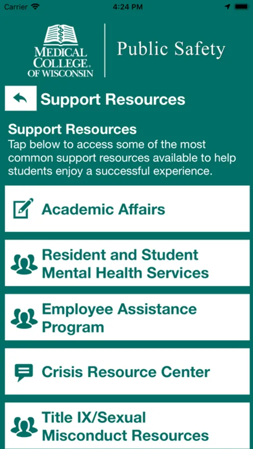 - Support Resources: Access support resources in one convenient app to enjoy a successful experience at the Medical College of Wisconsin.