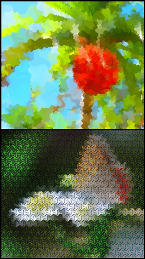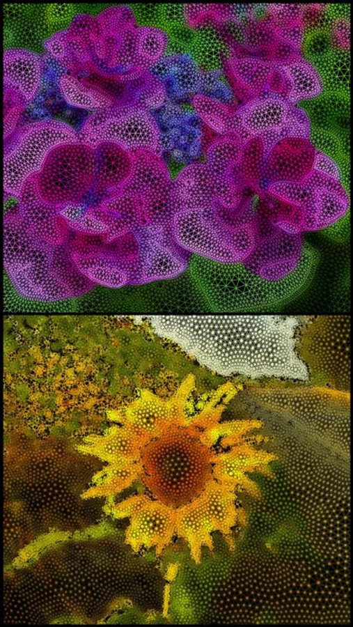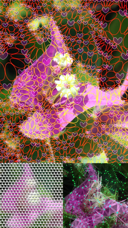 You can easily experience a digital art that converts to triangle, flower or heart pattern from photo.