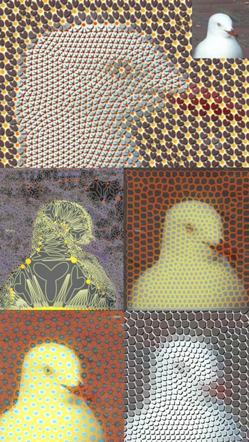 TriMeshImager generates a triangular mesh from a photo, and converts it to a vector image (drawing art).