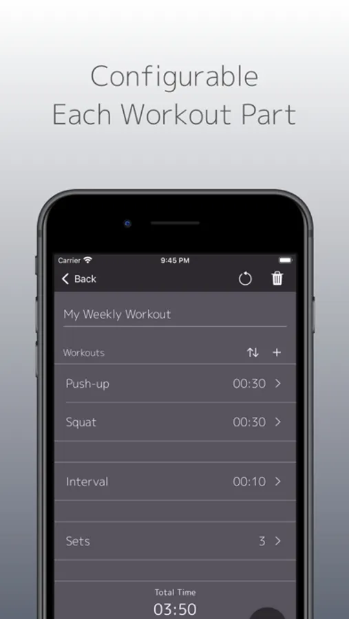 You can assemble the set by setting the training parts freely in Workoutimer.