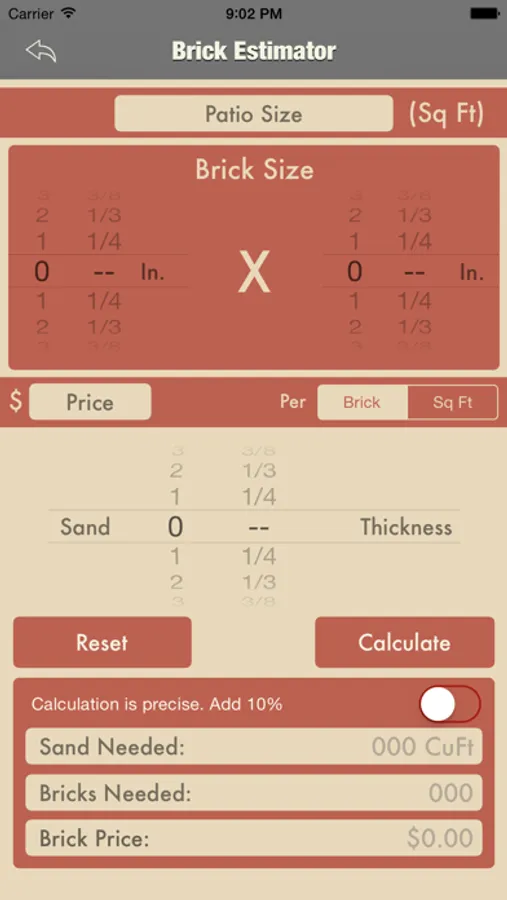Brick Patio Estimator - will help determine the amount of bricks and sand you will need to complete your next patio or sidewalk project.