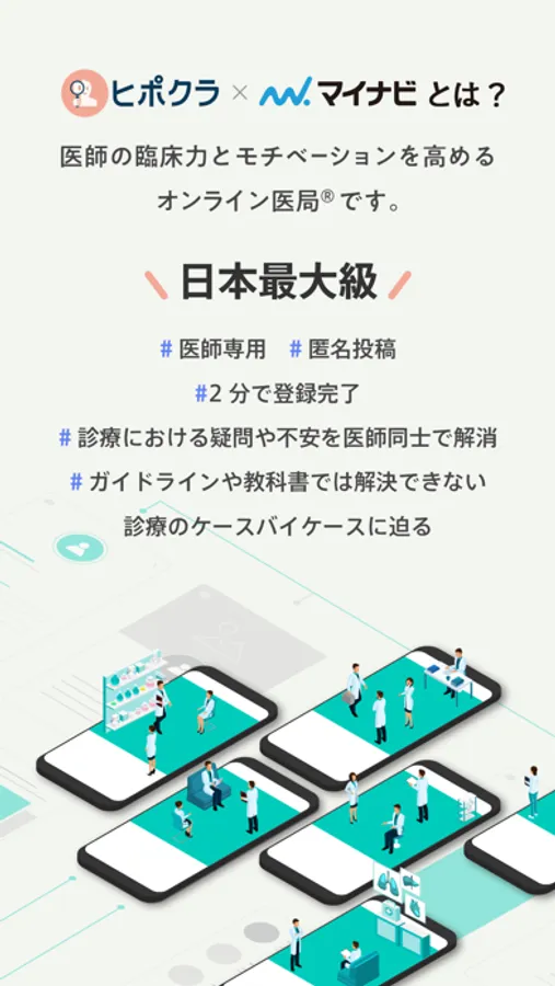 『ヒポクラ × マイナビ』は、臨床力とモチベーションを高めるオンライン医局®として、医師の5人に1人が利用しています。