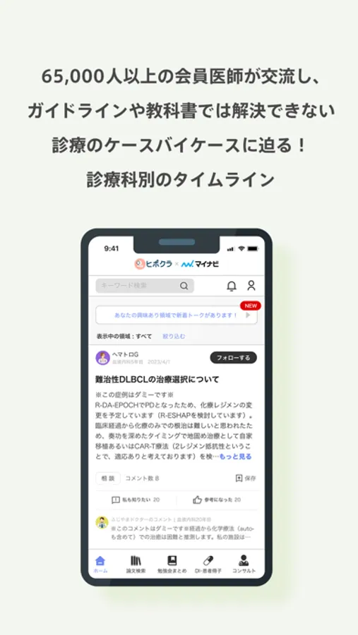 ◆65,000人以上の会員医師が交流し、明日の診療に使えるノウハウ・情報が集まる診療科別のタイムライン