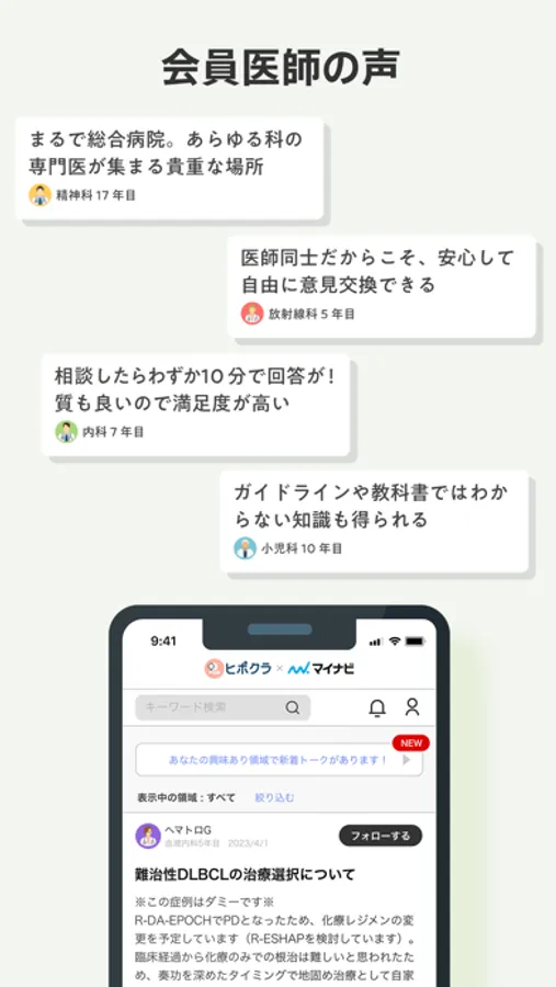 『ヒポクラ × マイナビ』が医師に支持される最大の理由は、Doctor to Doctor(医師同士)のコミュニケーションが根幹にある点。
