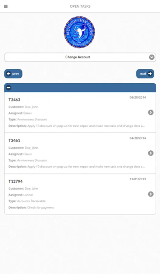 • Weekly email when the pool was serviced, including the chemistry readings, what was added, and any comments from the technicians.