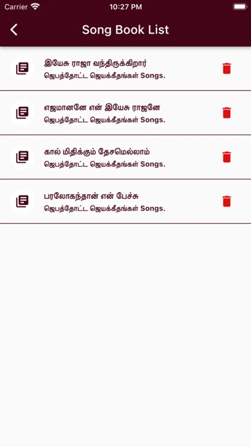 Tamil Christian Song Book application has more than 1800 Tamil Christian songs. It has lyrics for the songs from latest albums like En Meetper (All 5 Vol), Aayathama (Vol 1 to 3).