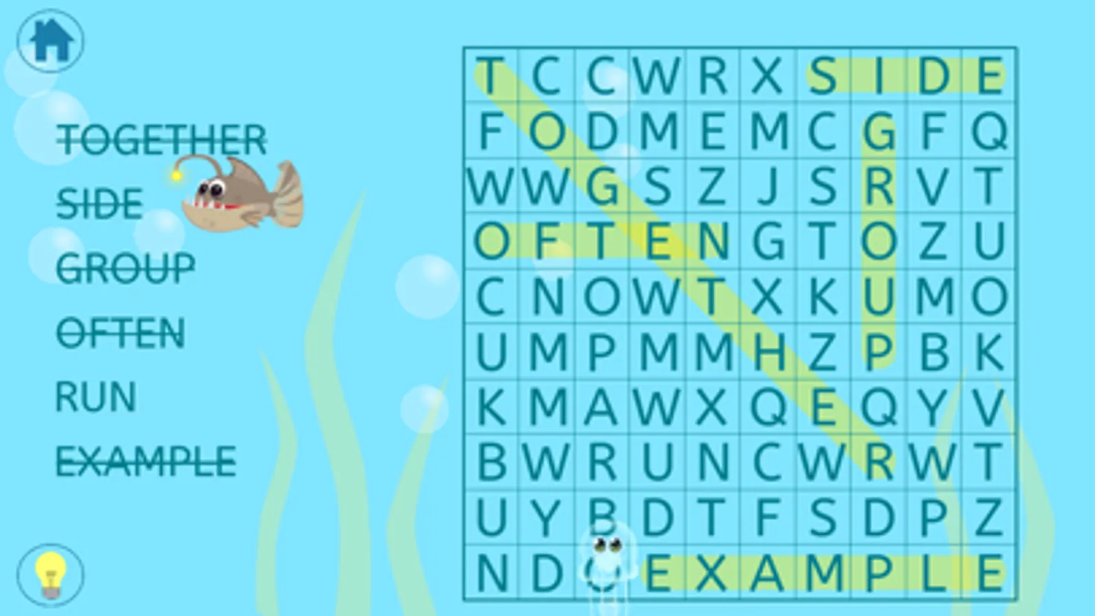 Oceans of Word Search - Underwater themed word search with context-sensitive help and interactive sea creatures as rewards for found words.