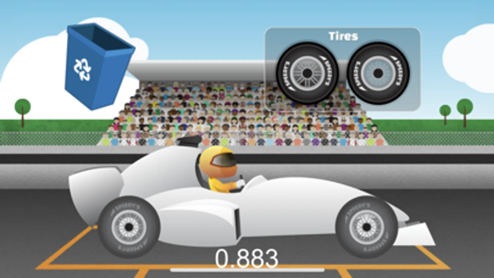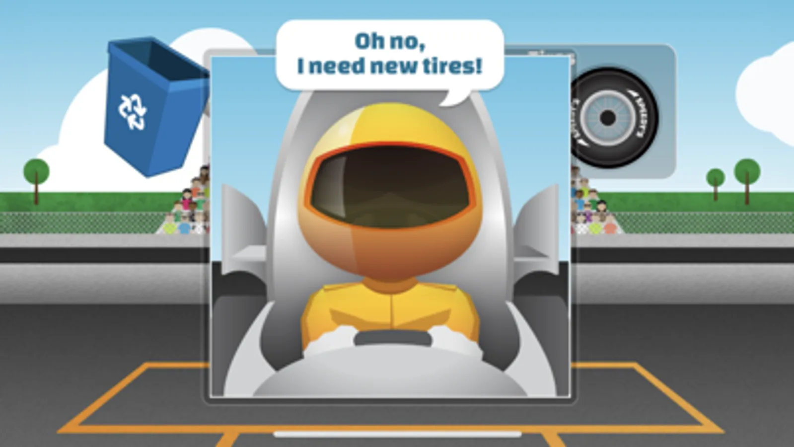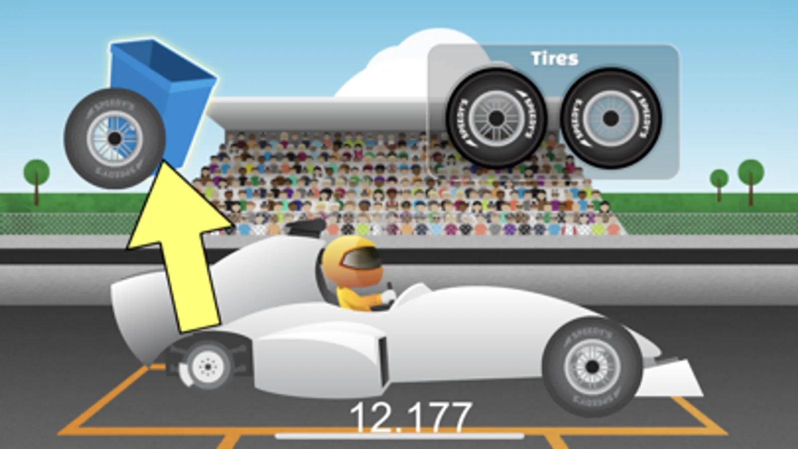 Give your toddler the experience of changing tires in a racing pitstop! When the car drives into your view for a pitstop, you recycle the old tires and put on new ones. That's it! The car will immediately require another pitstop, thus starting the cycle over.
