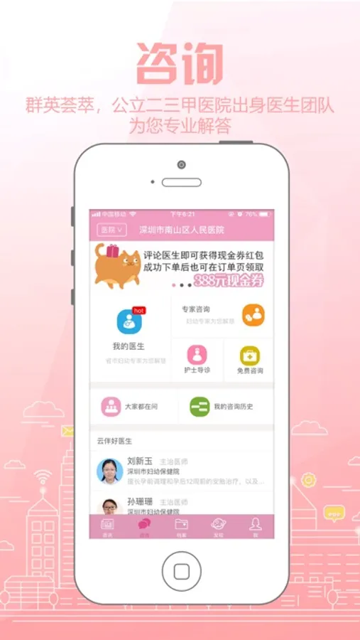 云伴母婴致力为医院提供智慧妇幼一体化解决方案。云伴母婴APP是一款专为孕妇和宝宝养育研发的物联网平台,平台将面向母婴的智能移动设备终端、健康大数据云平台、健康大数据分析、健康数据差异化安全等技术紧密结合,通过便携式智能终端、手机App以及大数据云平台,为孕妇和医院搭建良好的沟通桥梁,并提供相关便利的技术服务。