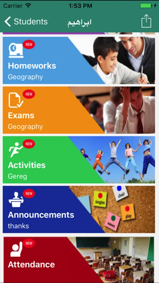 يستطيــع مسؤولـوا المراكز التعليميـة إرسال تنبيهـات عن الامتحانـات، الوظائـف البيتيـة أو برامج الأنشطـة لطالـب أومجموعـة طـلاب مباشـــرة.